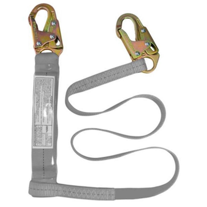 Descripción: Eslinga sencilla para detención de caídas, con dos ganchos de ¾” de apertura. Longitud de 1.8m y absorbedor de energía.