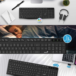 Teclado Inalámbrico KB-7200 Genius - Teclado inalámbrico delgado de 2.4GHz - Tecla AI para activar el asistente Copilot (para Windows 11 o superior) - Distancia de trabajo de hasta 10 metros - 11 teclas de acceso rápido - Advertencia de batería baja - Sin necesidad de instalación; plug & play