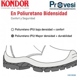 - Suela: PU PU - Binoclor - TRIDENSIDAD.    - Resistente a hidrocarburos, dieléctrica con alta resistencia a la abrasión y flexi- ble con recubrimiento en la puntera para menor desgaste