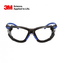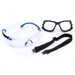 Lentes de Seguridad 3M™ Solus™ Serie 1000, S1102SGAF-KT, Claro, Recubrimiento Antiempaño Scotchgard™ con Patillas Azules, Banda Elástica y Marco de Espuma
