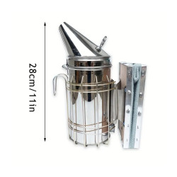 Ahumador Apicultura Acero Inoxidable Grande. Kit transmisor de humo de abeja.   Protector térmico (la capucha alrededor del ahumador) y gancho en la parte superior para evitar quemaduras por la superficie caliente.