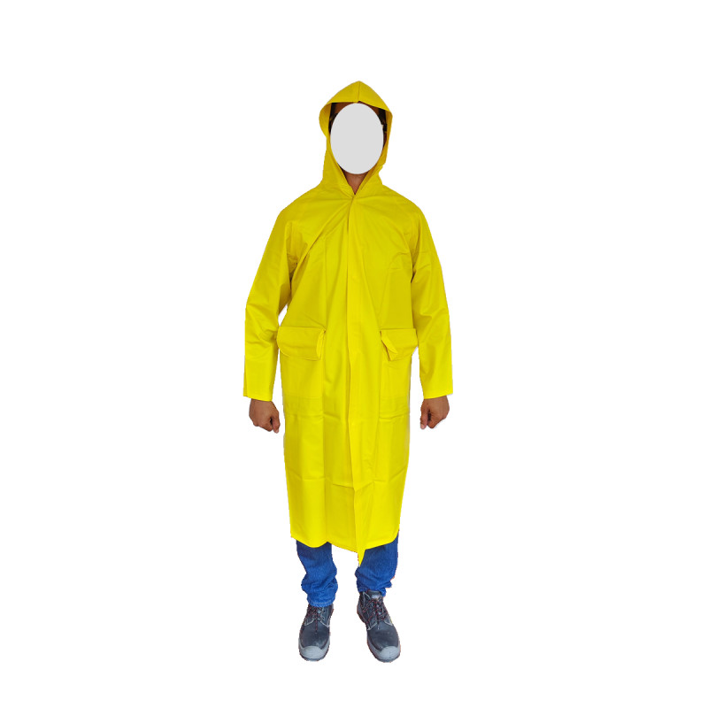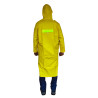 Abrigo Capucha Impermeable CalIbre 16 Con Reflectivo. Material PVC con base en poliéster, totalmente impermeable. Elaborada con tecnología de sellado por alta frecuencia. Prenda reforzada en la zona de las axilas, punto más vulnerable al rasgado durante el desarrollo de las actividades laborales.