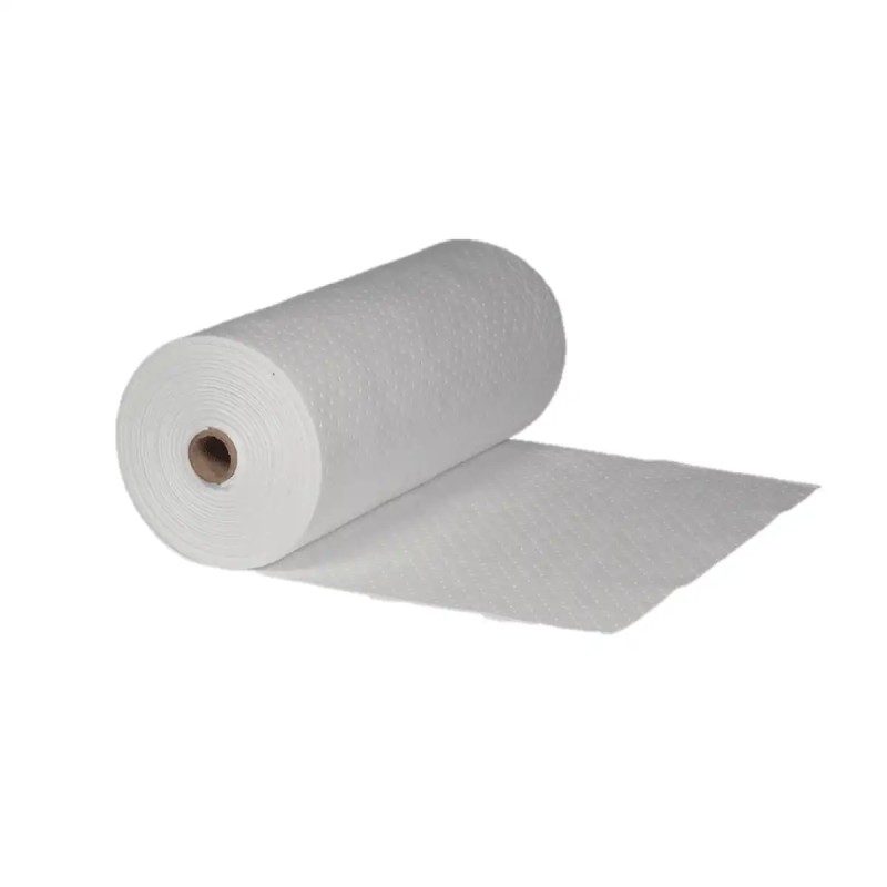Rollos de tela absorbente tipo Oleofílico, selectivos de hidrocarburos, fabricados en polipropileno soplado y sellado sónico siendo muy resistentes al desgarre, no sueltan pelusa.