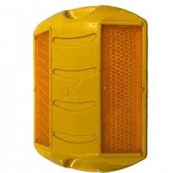 Dispositivo de señalización vial, diseñado para fijar a una superficie con el fin de servir de guia en caminos, áreas de seguridad o carreteras, especialmente en la noche o situaciones de neblina o lluvia. Tambien es ideal para ubicar en aproximaciones a zonas de peligro como pendientes, curvas, puentes y tuneles.