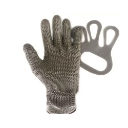Tensor Sostenedor Guante Acero TS. El sostenedor de guante de acero inoxidable tira de la malla hacia atrás evitando que la malla cuelgue de la punta de los dedos.