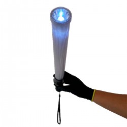 El Bastón Luminoso de Trafico Bicolor es un dispositivo electrónico de luz de gran utilidad para retenes y puestos de control en horas nocturnas, debido a que emite luces roja y verde con lo cual los agentes pueden indicar fácilmente a los conductores el momento de detenerse o de continuar. Incluye botón interruptor para encendido intermitente o fijo, correa ajustable a la muñeca y se puede recargar.