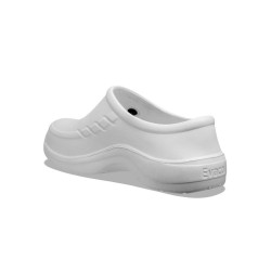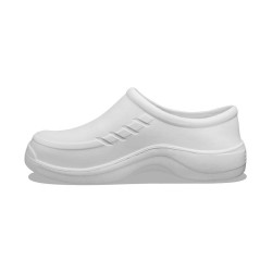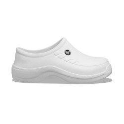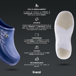 Calzado fabricado en material EVA, de alta durabilidad y que presenta alta resistencia al desgaste, posee características impermeabilizantes que evitan la proliferacion de bacterias, bondades que son inherentes al proceso de la materia prima conocida como Etilenvinilacetato (EVA), siendo este un copolimero termoplastico que en su proceso de transformacion favorece la proteccion al contacto con la piel, convirtiendo nuestro calzado en un producto de caracteristicas antibacterianas.